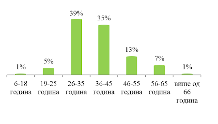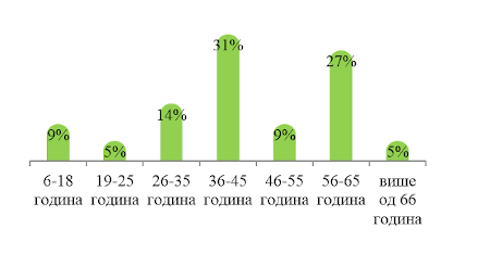 Slika 2. Procentualna raspodela ispitanika prema starosti