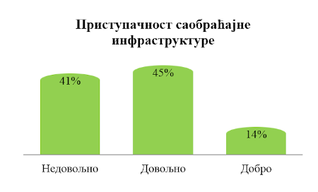 Slika 24. Procentualna raspodela odgovora ispitanika prema pristupačnosti saobraćajnoj infrastrukturi.