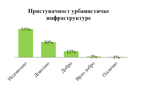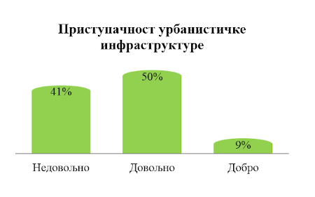 Slika 9. Procentualna raspodela odgovora ispitanika prema pristupačnosti urbanističkoj infrastrukturi