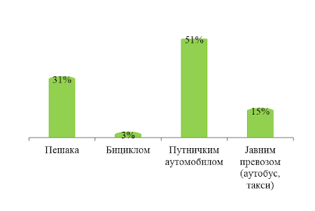 Slika 21. Procentualna raspodela ispitanika prema svakodnevnom vidu prevoza.
