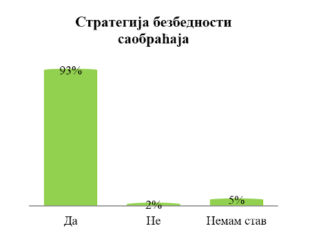 Slika 15. Procentualna raspodela ispitanika prema stavu o potrebi pripreme Strategije bezbednosti saobraćaja.
