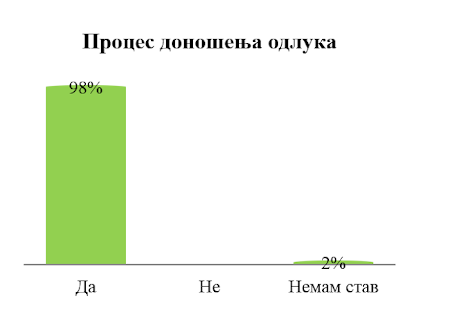 Slika 34. Procentualna raspodela ispitanika prema stavu o tome da li je potrebno osobe sa invaliditetom uključiti u proces donošenja odluka.