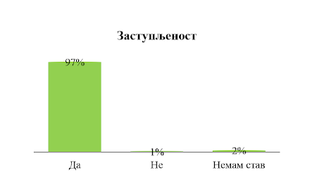 Strategija bezbednosti saobraćaja i Plan urbane mobilnosti, kao dokumenti treba u značajnoj meri da budu usmereni ka ranjivim učesnicima u saobraćaju, gde značajan akcenat treba staviti i na ograničeno mobilne grupe građana, gde se posebno ističu osobe sa invaliditetom. Međutim, slika 33. pokazuje da ispitianici u velikoj meri smatraju da problemi osoba sa invaliditetom nisu vidljivi donosiocima odluka (60%). S tim u vezi i nije iznenađujuća činjenica da najveći procenat ispitanika smatra da je potrebno osobe sa invaliditetom uključiti u proces donošenja odluka (98% - slika 34.). Najveći procenat ispitanika (97%) smatra da je potrebno da osobe sa invaliditetom budu više zastupljene u javnosti i da se o njihovim potrebama više govori (slika 35.).