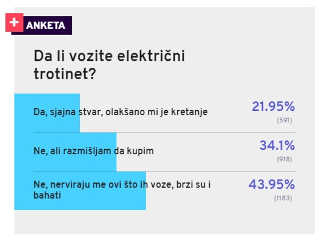 Sa ovom vrstom vozila u javnosti i na društvenim mrežama došle su i bezbroj vrsta polemika i rasprava. U prilog tome govore i rezultati ankete koja je sprovedena na portalu mondo.rs. Naime, 44% ispitanika smatra da su vozači trotineta bahati i da ih nerviraju, 22% ispitanika smatra da je to odličan vid prevoza, dok 34% razmišlja da ih kupi. Takođe, otvorila su se i bezbroj pitanja i nedoumica. Kuda mogu da se kreću, kojom brzinom, ko sme da ih vozi, da li je potrebna dodatna zaštitna oprema, kakva signalizacija je neophodna, da li vozači trotineta moraju da poznaju signalizaciju i pravila saobraćaja, da li ih zakon prepoznaje?