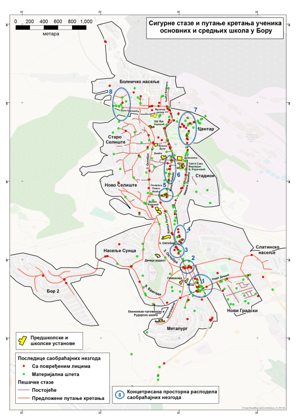 Istraživanje kroz projekat Sigurne staze, koje je sprovelo GIS strukovno udruženje Srbije koje radi na primeni i razvoju geografskog informacionog sistema, i uz veliku i stručnu pomoć master inženjera saobraćaja Igora Velića iz Bora, precizno su prikazana kritična mesta pri kretanju učenika na teritoriji grada, ali i mere koje treba preduzeti ne bi li deca bila bezbednija.