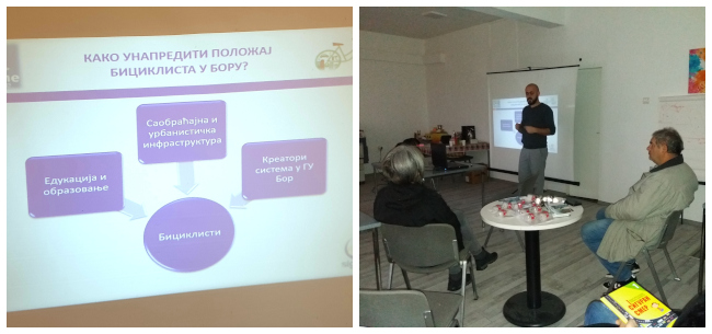 Na tribini je bilo reči o problemima stradanja biciklista u Boru i ne postojanja zainteresovanosti kreaotora sistema u GU Bor da taj problem reše. Naime, u proteklih pet godina u Boru je povređeno 12 biciklista, dok je jedan naš sugrađanin smrtno stradao.